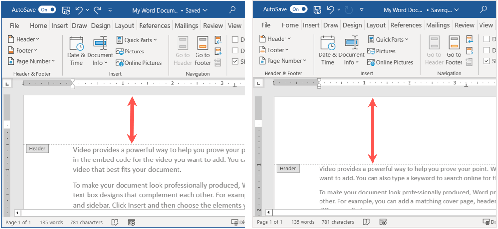 In the screenshot below, you can see our document before (left) and after (right) adding a top gutter margin. You’ll notice extra space above the Header section, or top margin.