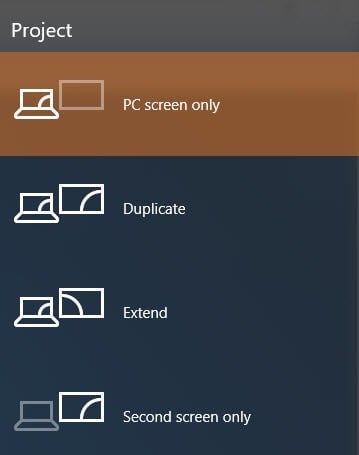 For Windows 10, you want to choose PC screen only from the list. Hopefully, if the taskbar issue was related to the presentation display, then this ought to fix it.