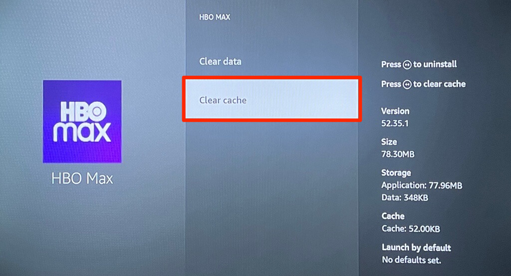 On Fire TV devices, head to Settings > Applications > Manage Installed Applications > HBO Max and select Clear cache.