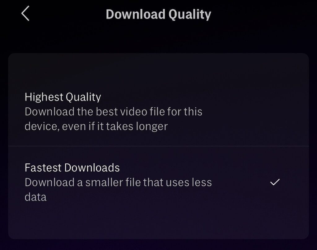 You can choose to download a lower-quality version that will take up less storage on your device and likely download even faster.