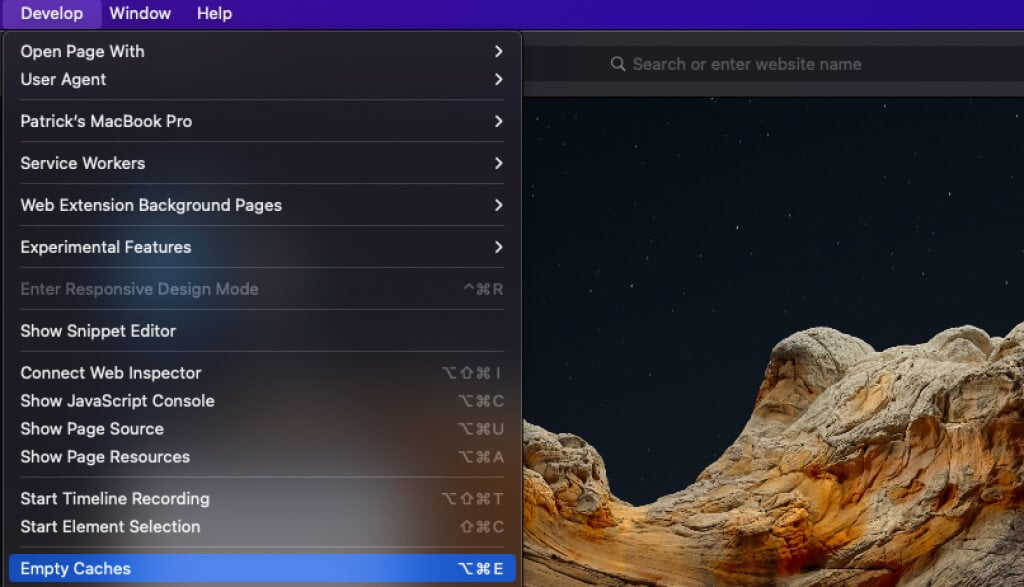 - On Safari, select Safari > Develop.