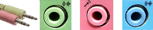 These are most commonly used for audio devices. A green one is for connecting speakers or headphones. Pink is used for microphones. Blue is used for a direct connection from an audio device. It’s also known as a line-in. There are other kinds but they’re not common on home devices.