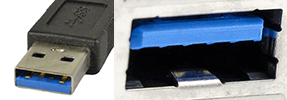 Visually, the USB 2 Type A and Type B and their USB 3 counterparts can easily be distinguished by the color of the block inside the connector. The faster USB 3.0 has a blue block where the slower USB 2.0 has a black block. The other types of USB connectors don’t have that kind of block. We’ll go into their transfer rates in their own sections.