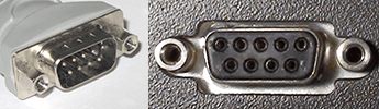 Both types look identical. They look like the DE-9 but have 3 rows of 5 holes, where the DE-9 has a row of 5 and a row of 4 below it.