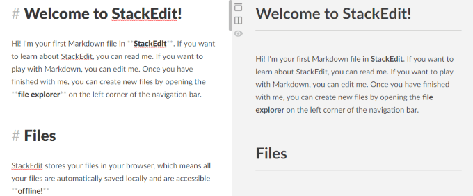 For example, StackEdit provides a distraction-free interface with two panes: one for your Markdown code and another for a dynamic, live preview of your text.