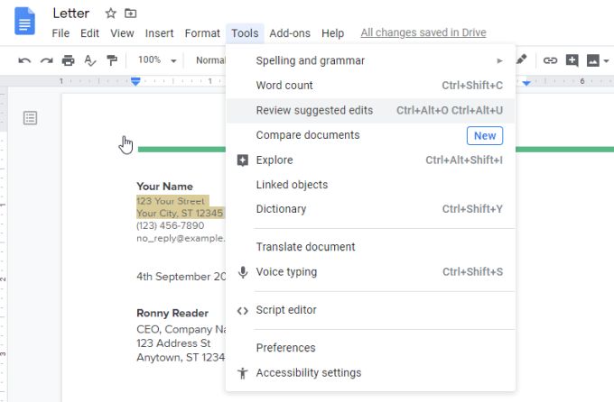 To do this, select the Tools menu and select Review suggested edits.