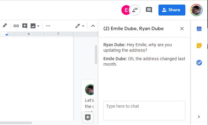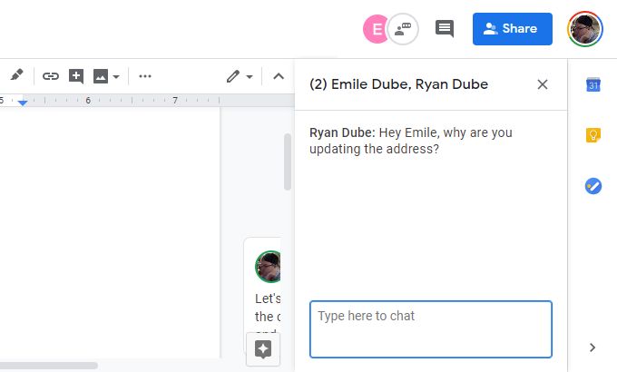 Google Docs chat is especially useful for making editing suggestions to a document without actually making them.