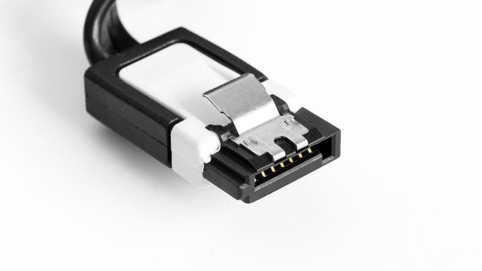 More modern drives are likely to have a SATA (Serial AT Attachment) connector like this: