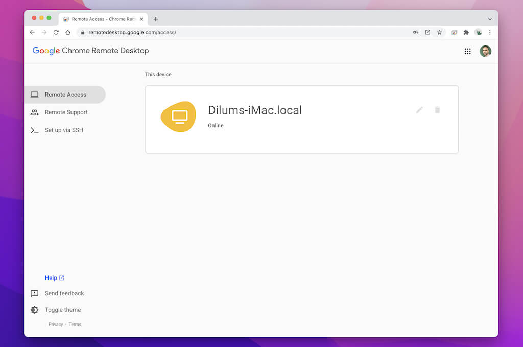 - Get to the Chrome Remote Desktop page on your PC. Your Mac will show up as a remote device—select it.