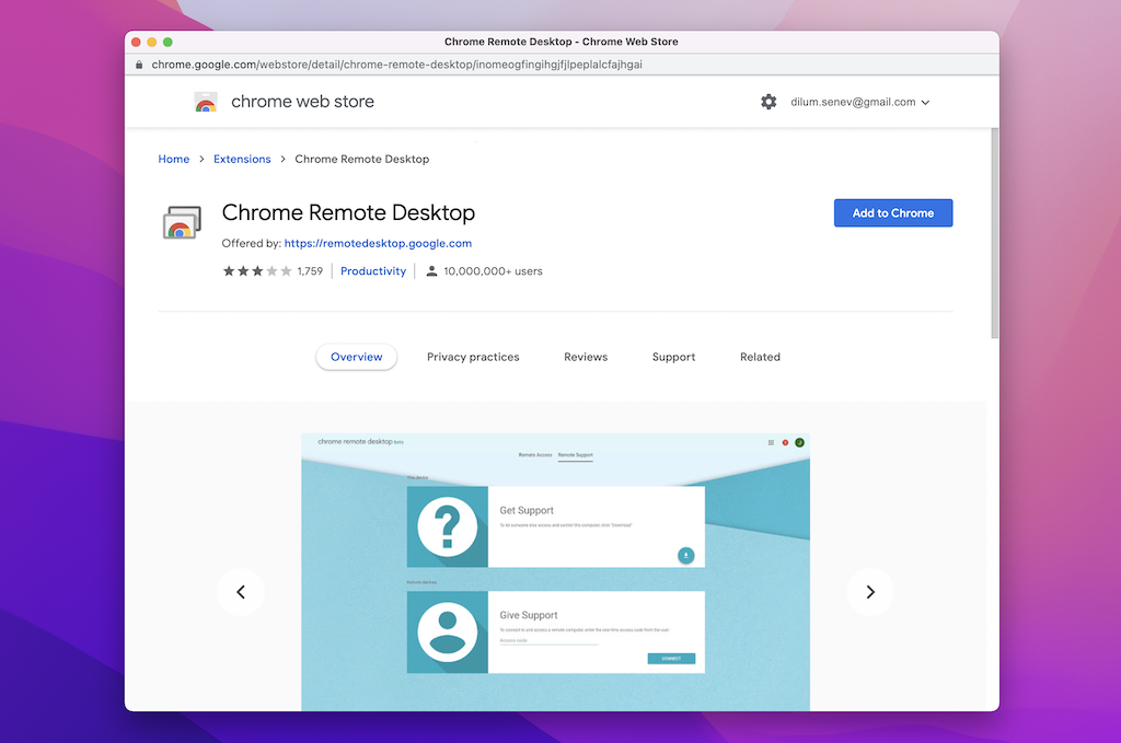 - On the Chrome Web Store pop-up, select Add to Chrome to install the Chrome Remote Desktop extension.