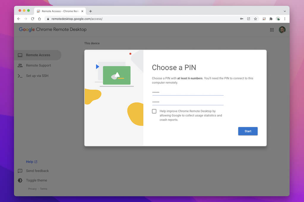 - You’ve finished setting up your Mac with Chrome Remote Desktop. You can exit the page but leave Chrome running in the background.