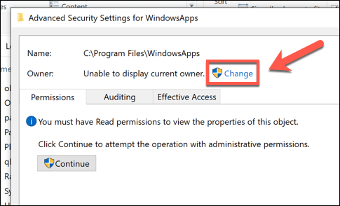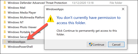 Unfortunately, this does mean that making any changes to the WindowsApps folder (or viewing it at all) is difficult. You’ll need to take steps to take ownership of the folder first, allowing you access to change the folder afterwards.
