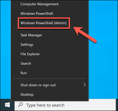 - To open a new PowerShell window, right-click the Start menu and select the **Windows PowerShell (Admin) **option.
