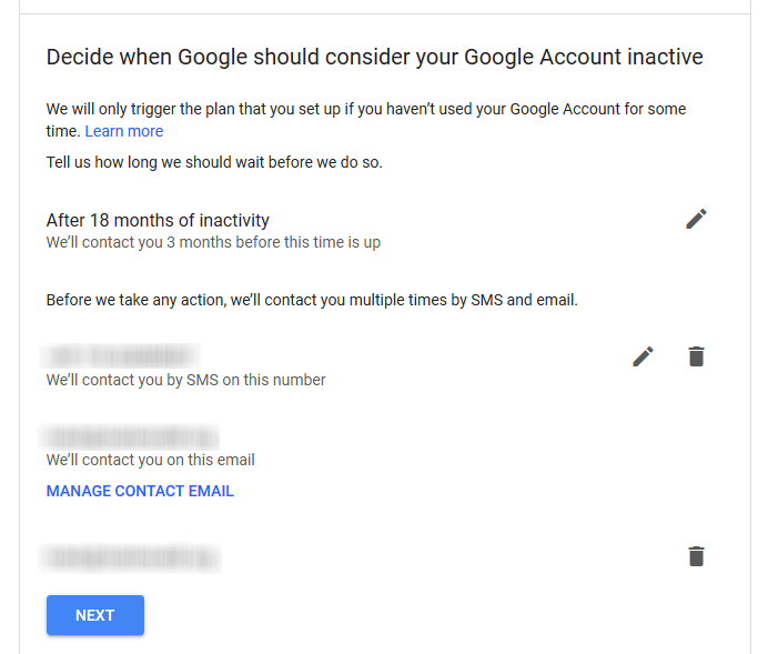 Even if you keep the account active, making it obvious you’re still alive, Google will send you regular reminders that Inactive Account Manager is running. So if you’ve fallen out with your trusted contact, these reminders can push you to change the contact to someone else.