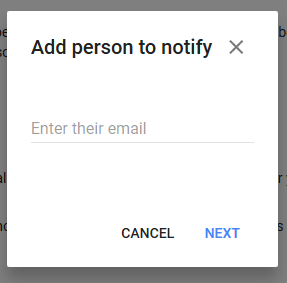 After clicking the blue “Next” button, we come to the “Choose who to notify & what to share” section.
