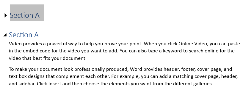 This is convenient if you use the headings to designate sections in your Microsoft Word document. You can collapse the content to more easily work on another section.