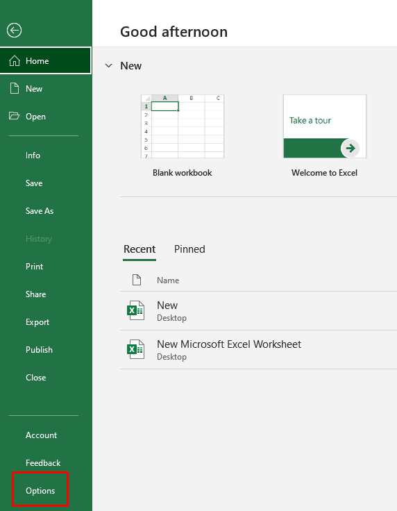- Go to File, and select Options at the bottom of the left-hand menu.