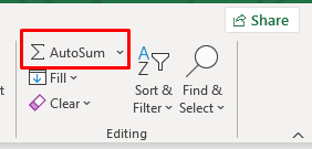 - In the Edit section of the Home tab, find the Sum function, also named AutoSum depending on the version of your Excel app.