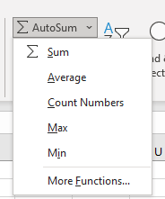 - Click the arrow next to the AutoSum to open the aggregation menu to choose the type of aggregate. The default one is the Sum formula.