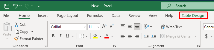 Now you’ll be able to see the Table Design tab on your Microsoft Excel worksheet ribbon.