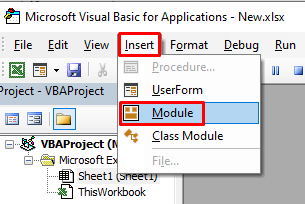 - Paste the code into the newly opened Module.