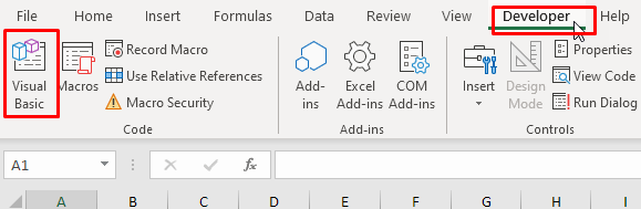 In order to use VBA, you’ll need access to the Developer Tab in Excel. If you can’t find it on the ribbon, press Alt + F11 on your keyboard to bring up the VBA window in which you can work.