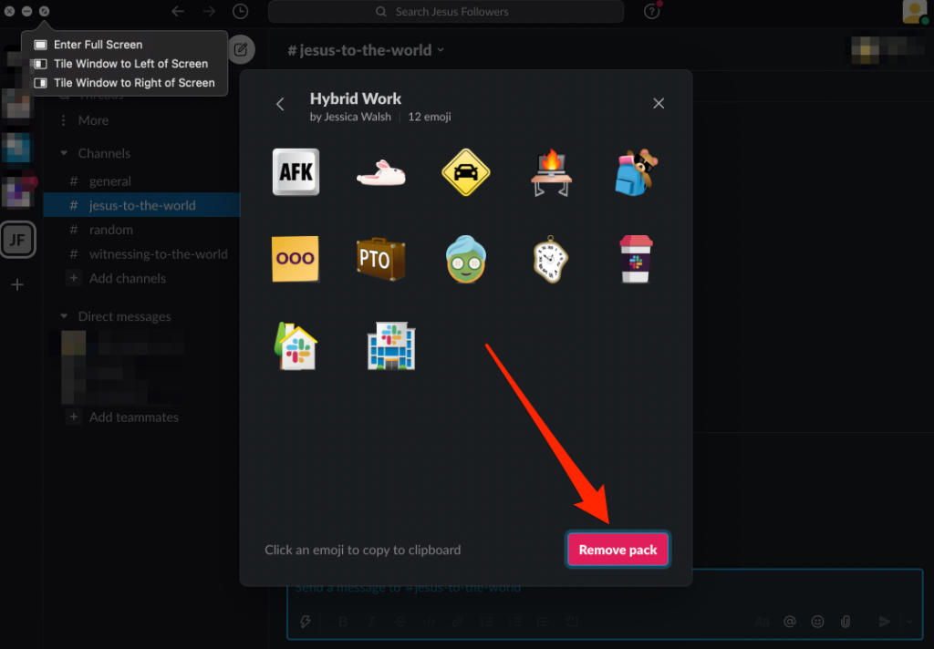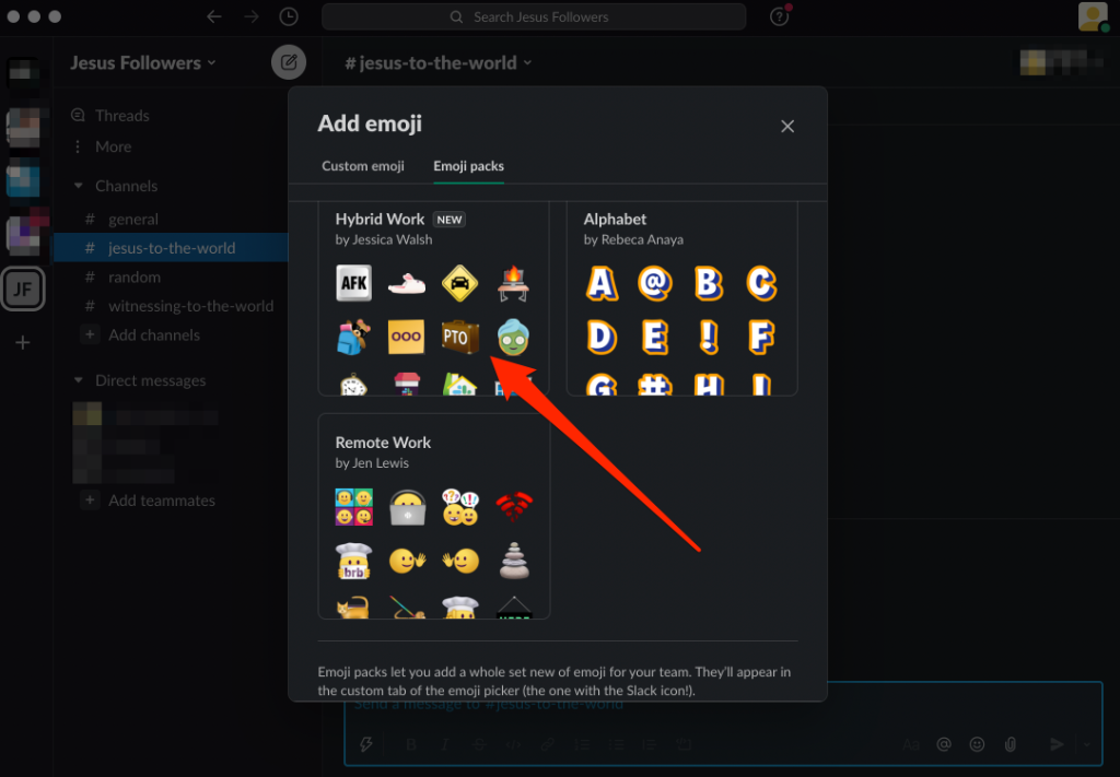 Note: You can’t remove individual custom Slack emojis from an emoji pack.