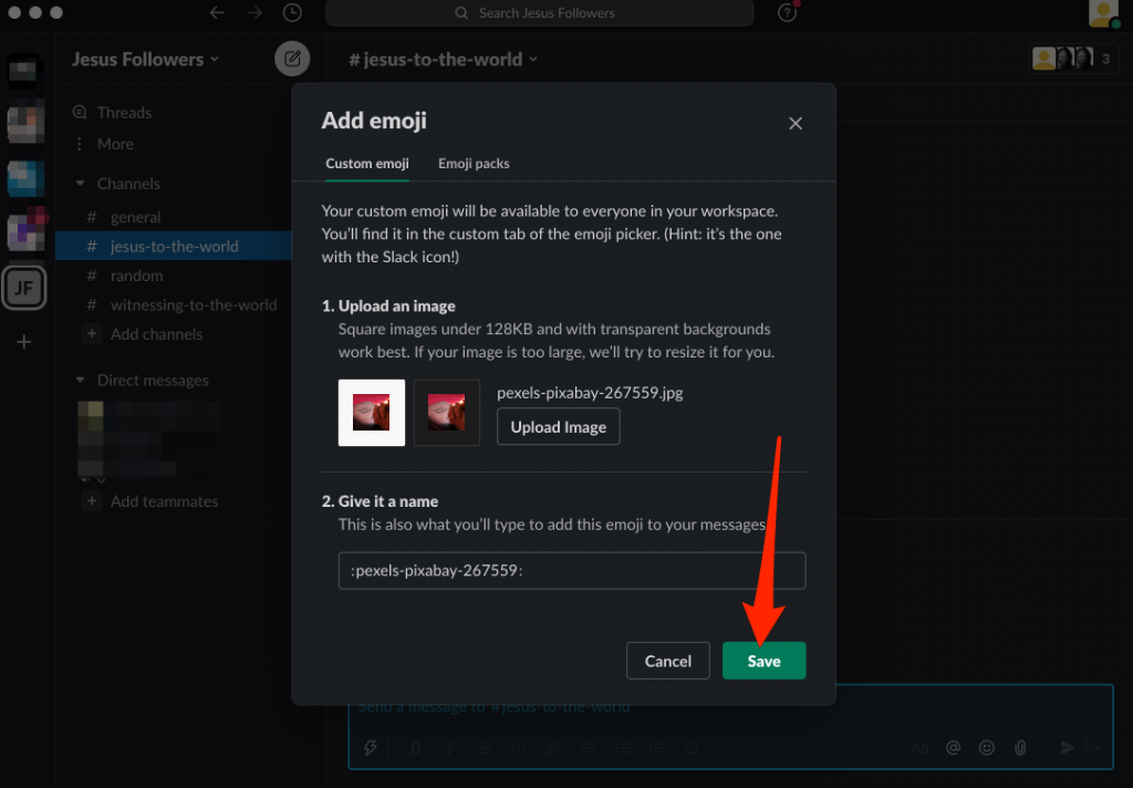 For best results, pick a square image that measures 128x128px, is less than 128KB, and has a transparent background – Slack will resize it automatically. If you use larger images than the recommended size, you may end up with a blurry emoji, which isn’t functional or fun.