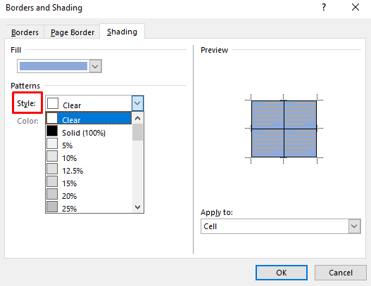 This will open the Borders and Shading window. From here you can set the color and parameters by using the steps described in the previous method. Let’s repeat them just in case: