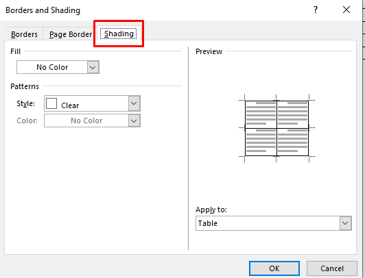 Adding background color to the Microsoft Word table with Borders and Shading is best used on already existing tables.
