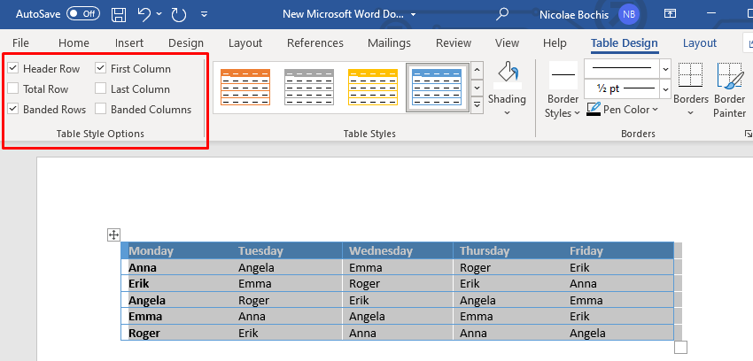 - You can now use the Table Style Option section to modify the table.