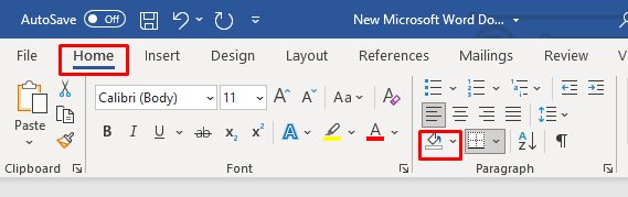 - You can also find the Shading button in the Home tab on the ribbon.