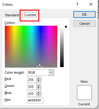 - When you’re done selecting the custom color, press OK to return to the table.