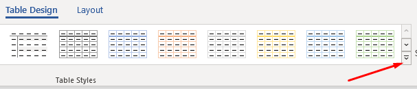 - Click the arrow at the bottom right corner of the Table Styles ribbon.