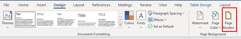 - Select Page Borders on the right side of Word’s ribbon.