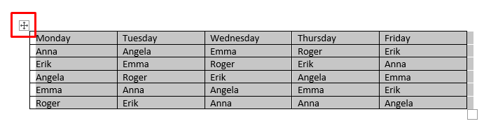 - If you want to select the whole table, mouse over it and click on the four-fork arrow icon at the top.