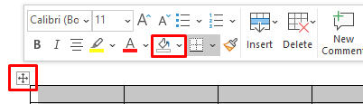 - Simply click on the table selection button and a new menu will appear. Locate the Shading button there by looking for its icon.