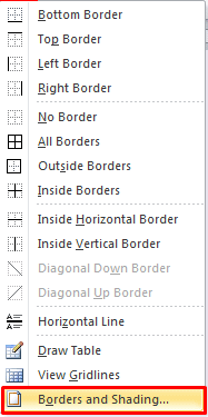 - Right-click on one of the selected table cells and choose Borders and Shading.