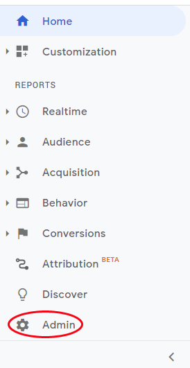 - After signing into your Google Analytics account, select the **Admin **icon at the bottom of the left menu.
