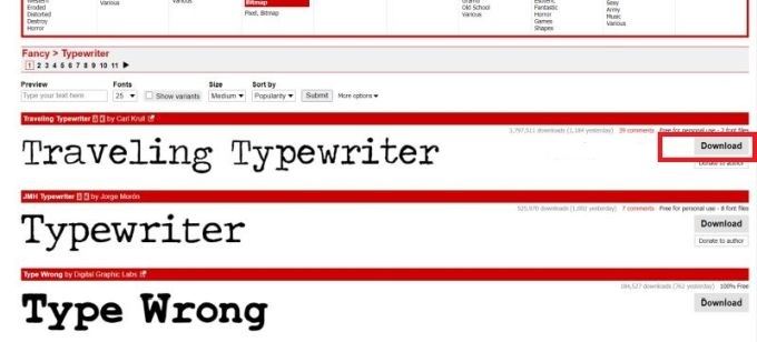 When you have found one you would like to install, there will likely be a download button nearby, and clicking it will save a .zip file of the font to your computer. In this example, I am using the site DaFont. Once downloaded, you can then either click on the file in your browser, or locate it in your file manager.