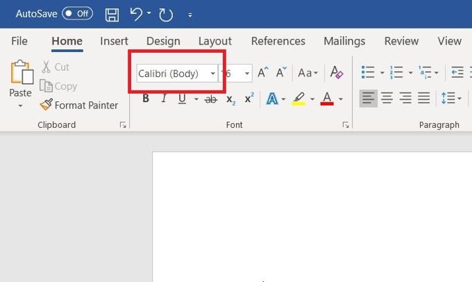 With the new font installed, you should easily be able to select it to type into your Word documents. After you open up Word, you should see a box near the top left of the screen showing the font you’re currently using.