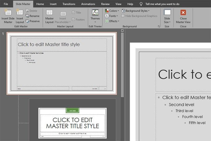 - On the **Slide Master** tab in the ribbon, click on the red X icon to **Close Master View**.