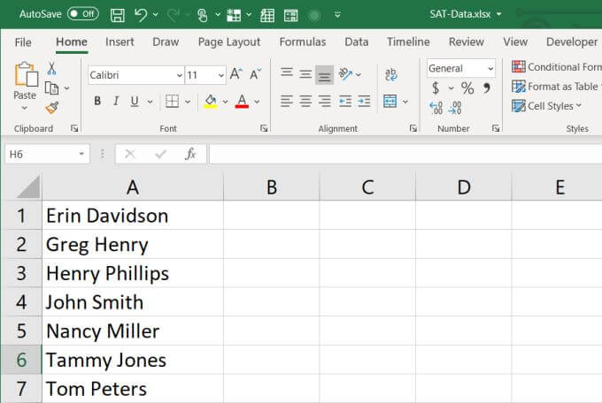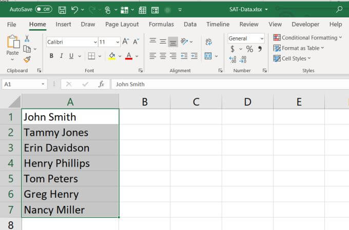 The simplest method to alphabetize in Excel is if you have one column of data. For example, if you have a column with a list of names.