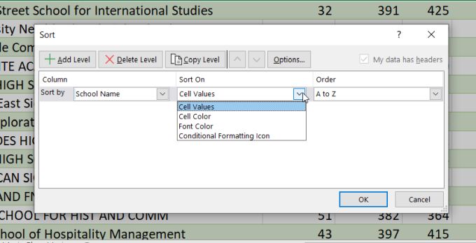Select either Sort A to Z or Sort Z to A depending how you’d like to organize the data.