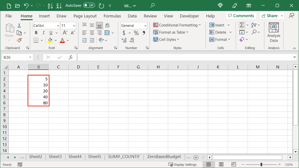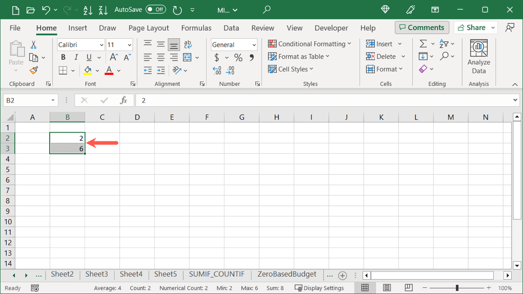 If you prefer to select the exact value for the increase as well as the stopping value, you can do this using the Autofill button and a single cell instead.