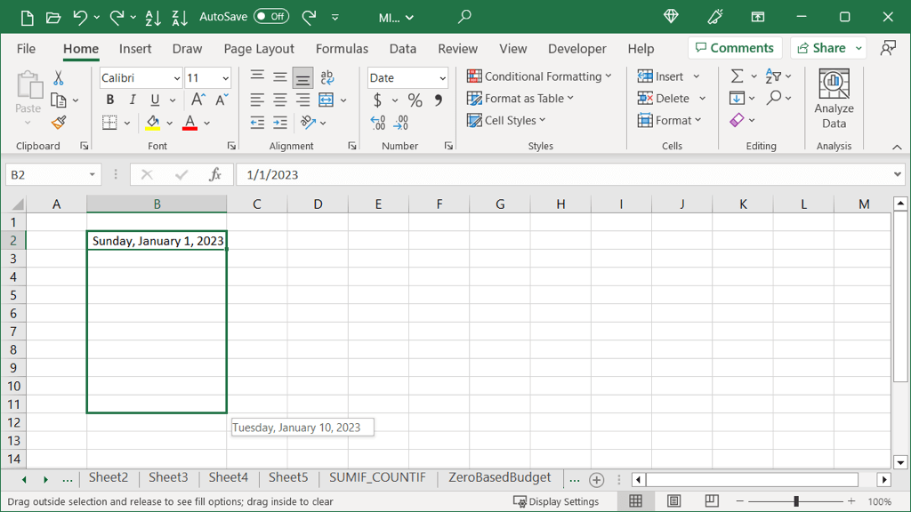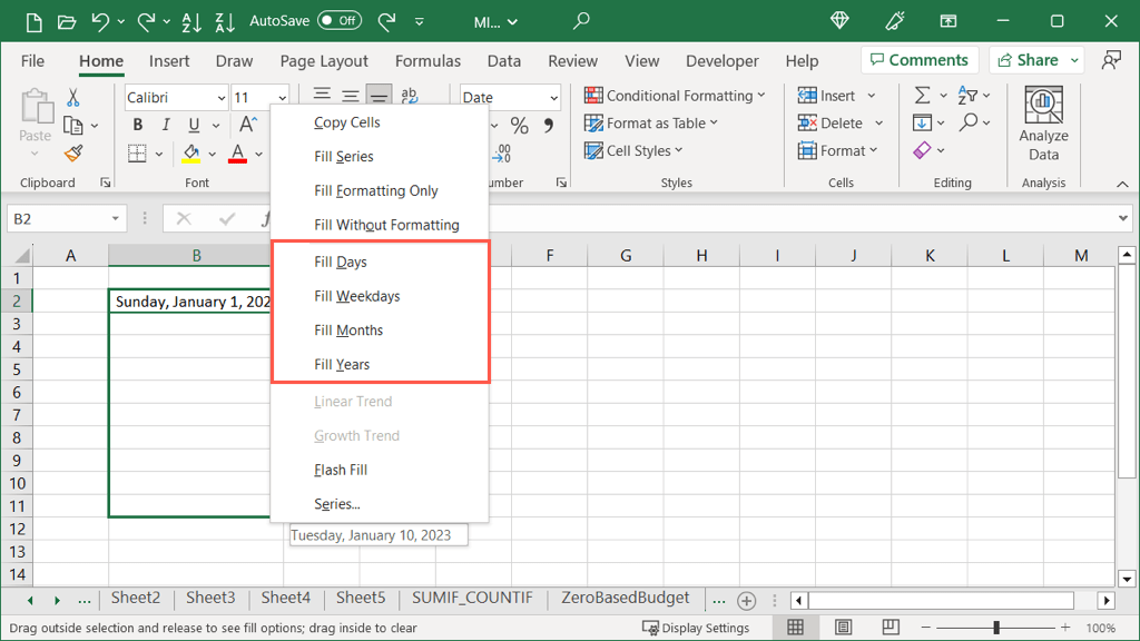 When you enter dates in Excel, the application is smart enough to recognize this which allows you to use Autofill to complete a sequential series of dates. Additionally, you can fill in the dates by adjusting the month, day, or year, giving you more than one option.