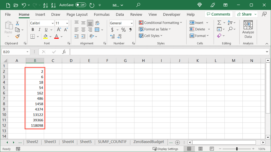 You’ll then see your cells filled starting with the number you selected, multiplying the step value, and ending by the stop value.
