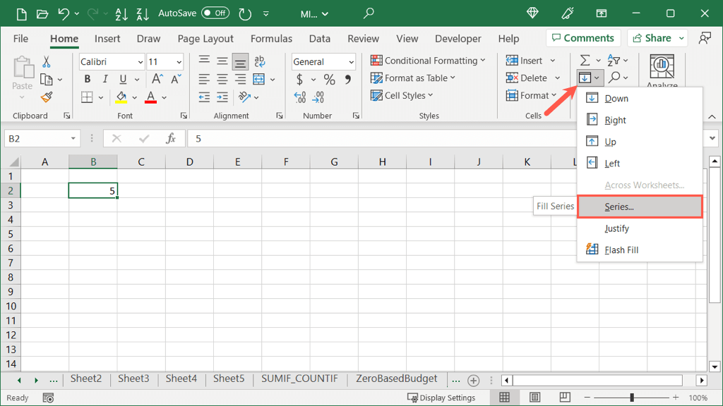 - Go to the Home tab, open the Autofill drop-down menu, and choose Series.