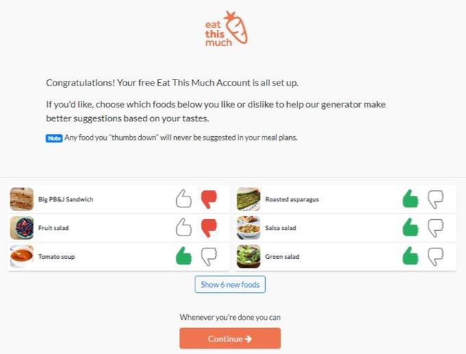 This helps the app better tune its meal selections to your liking.