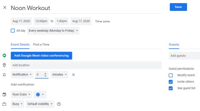 That may seem like an obvious solution, but too many people use Google Calendar manually, rather than setting up automated settings to automate all recurring appointments during the week.